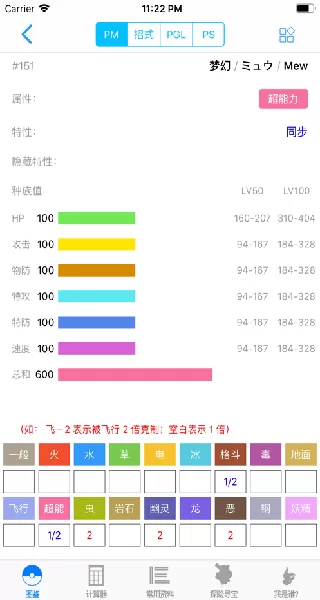 图示:宝可梦计算器APP典型的伤害计算与能力值模拟界面,数据一目了然。