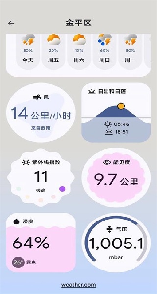 - 高度自定义界面:用户可以根据个人偏好,自定义界面显示的信息模块和布局,打造独一无二的个性化天气中心,只关注自己最需要的数据。
