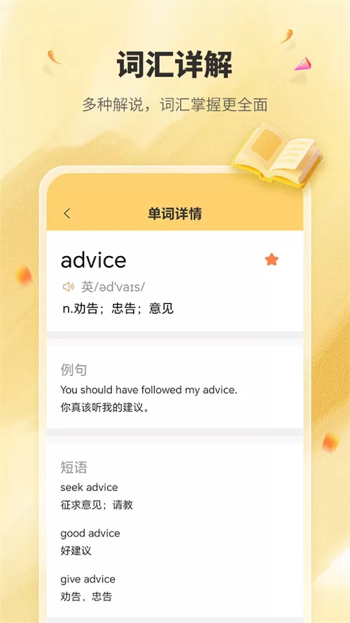 - 科学记忆体系:软件的核心是依据艾宾浩斯遗忘曲线设计的智能复习计划。它会自动为你安排单词复习节点,确保新学的词汇能有效转化为长期记忆,从根本上解决“背了又忘”的难题。