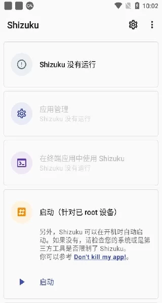 图示:Shizuku安装包简洁明了的主界面,是管理高级权限的起点。