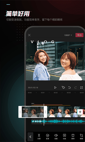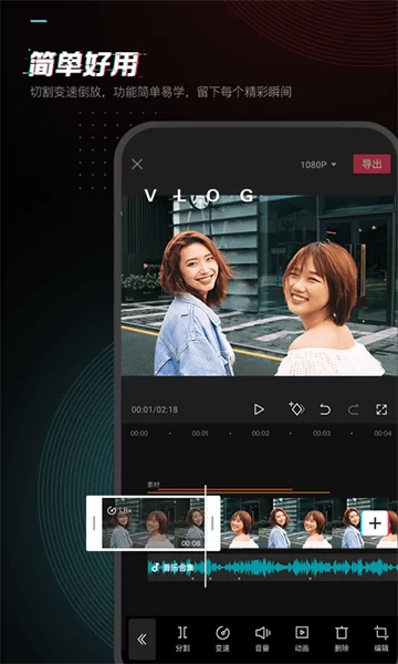 - 灵活的变速与倒放:提供0.2倍至4倍的宽范围速度调节,配合一键倒放功能,轻松营造快节奏卡点或时光倒流的奇幻视觉效果。