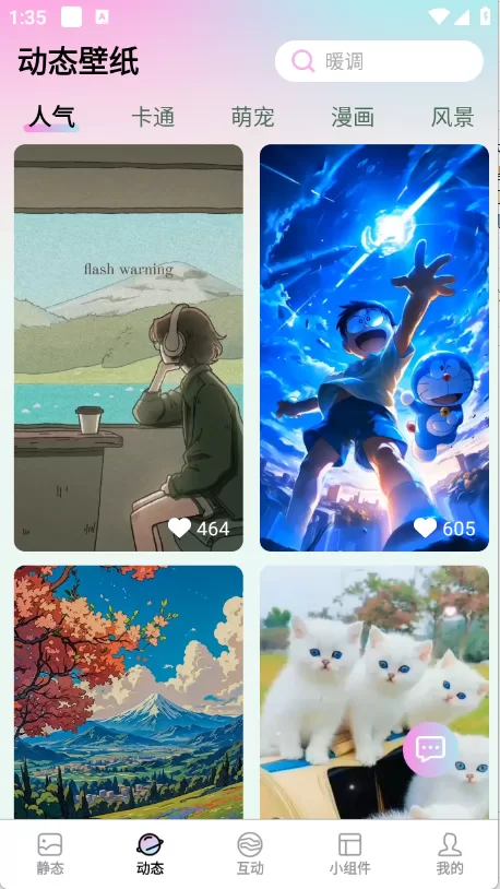 想要让你的手机桌面焕然一新吗?百变壁纸精灵APP下载就能帮你实现!这款集壁纸与小组件于一体的应用,不仅提供海量高清无水印壁纸资源,还能智能推荐符合你喜好的内容。无论你是喜欢动态壁纸还是静态壁纸,简约风格还是可爱风格,百变壁纸精灵都能满足你的需求。通过简单的操作,你就能轻松下载、收藏和分享喜欢的壁纸,搭配实用的天气、时间和日历小组件,打造既美观又实用的个性化手机桌面。