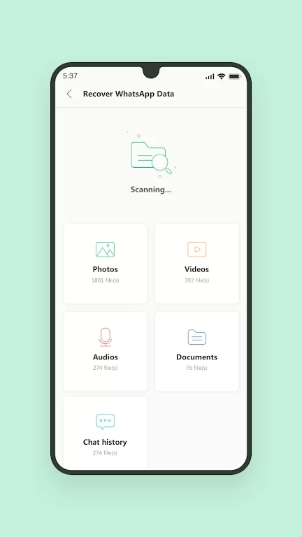 首先,软件的安装和界面引导非常友好,没有冗余广告和复杂设置。我们故意删除了一部分手机相册中的照片和一段微信聊天记录。使用快速扫描模式,几乎在点击的瞬间,近期删除的照片就被罗列出来;随后我们启用深度扫描,大约15分钟后,更早之前删除的一些文件也被成功找到。