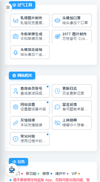 图:在工具集合页面点击左上角进入菜单。