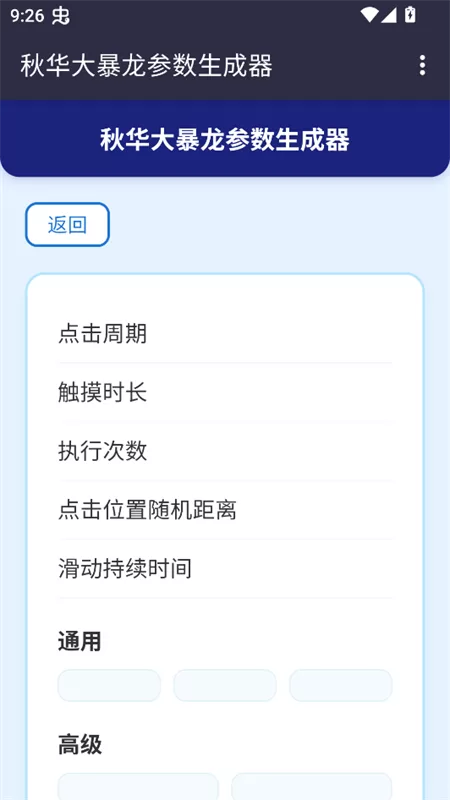 图示:秋小华暴龙参数生成器手机版简洁直观的参数设置界面,所有功能一目了然。