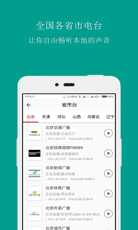 - 海量电台资源:收录全国各地上千个FM电台,涵盖音乐、新闻、经济、交通、都市、体育、外语等丰富内容