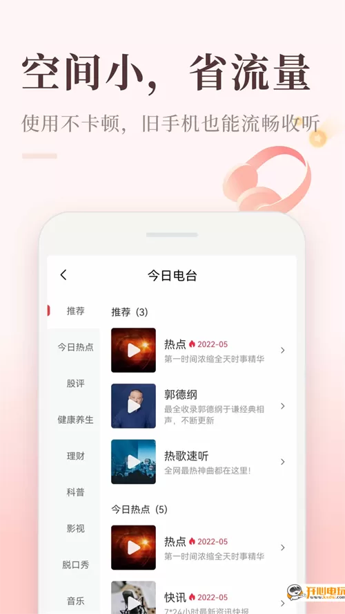 图示:喜马拉雅极速版界面简洁,内容分类清晰,一键即可开始收听。
