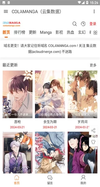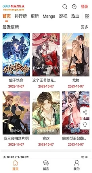 图为colamanga高清漫画APP的主界面,设计简洁,分类清晰,便于快速查找心仪作品。