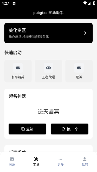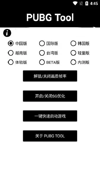 图示:PUBG画质助手简洁明了的主界面,核心功能一目了然。