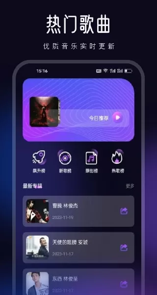- 智能推荐,懂你所爱:基于你的收听历史和偏好,算法会持续推荐符合你口味的歌曲与歌单,让你不断发现音乐惊喜。