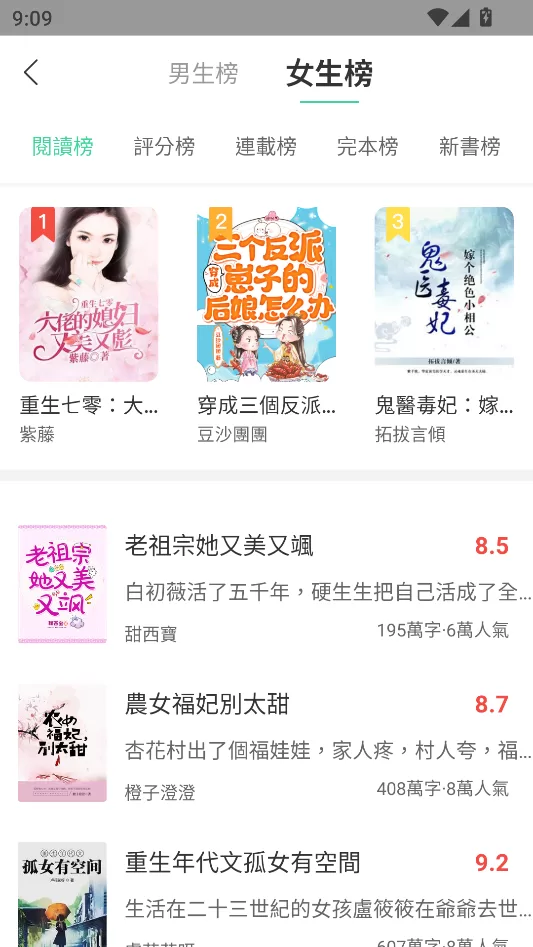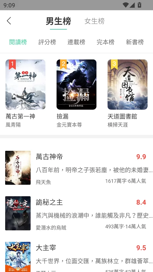 图示:书迷小说app的推荐界面,各类榜单和分类一目了然,方便快速找书。