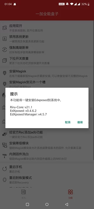 - 框架安装与管理:软件提供了一键安装LSPosed和EdXposed框架的解决方案,集成了所需的全部组件。如果安装失败,通常是因为与其他框架冲突或Magisk版本过低,按照应用内的提示排查即可。