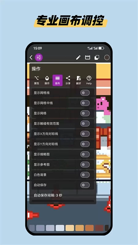 图示:进入核心创作区域,利用多种工具将你的像素艺术灵感变为现实。