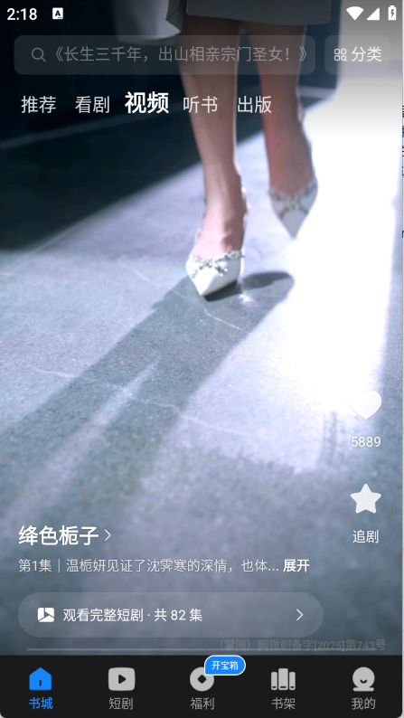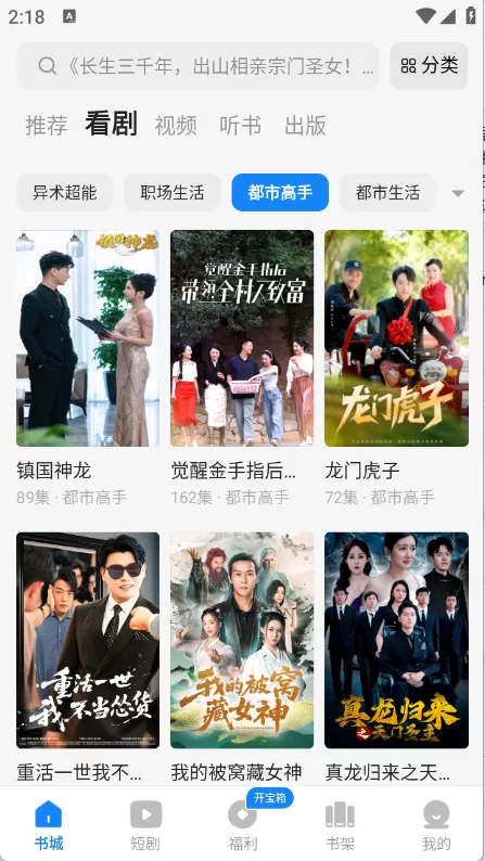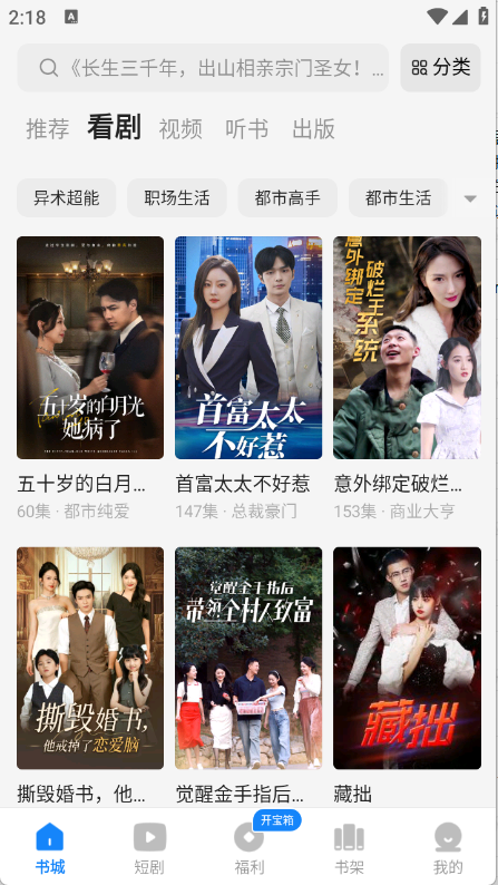琴弦APP书城界面,展示丰富的小说和短剧分类