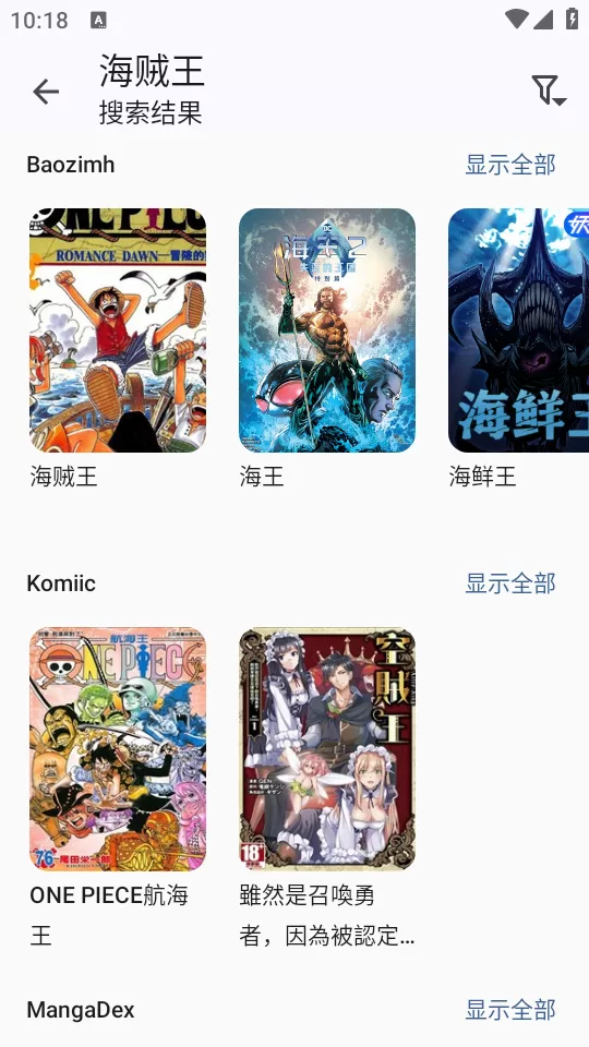- 你可以直接输入漫画名称进行精准搜索,应用会聚合所有来源的结果。