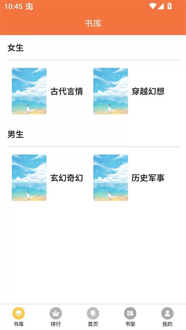图示:朵米星球APP清新简洁的主界面,各类小说分类一目了然。