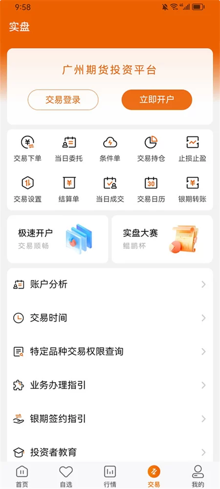 广州期货APP的核心价值在于构建了一个无缝衔接的交易生态。其主要功能模块构成了一个高效闭环: