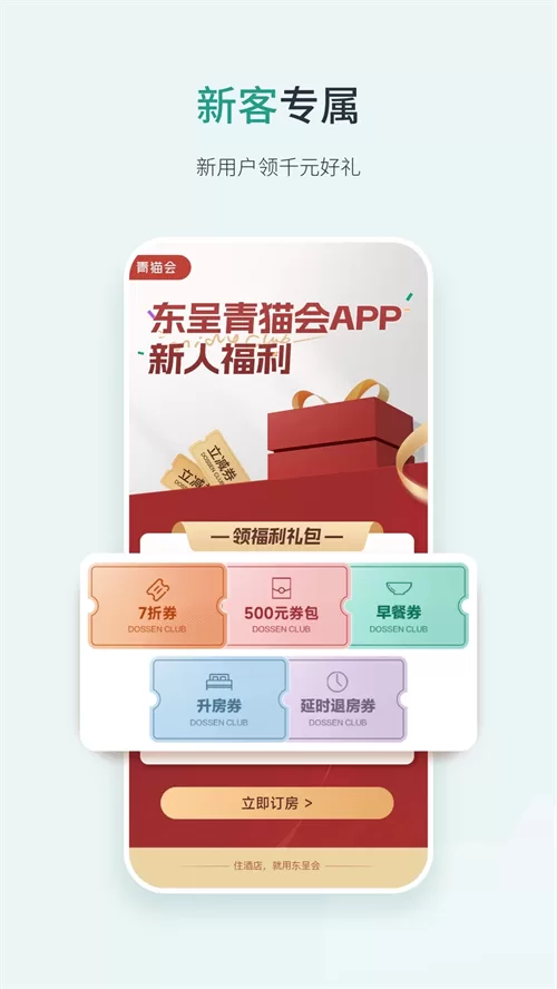 - 新人专享:首次下载东呈青猫会app,即可领取价值1000元的优惠券包及升房券,起步即享优惠。