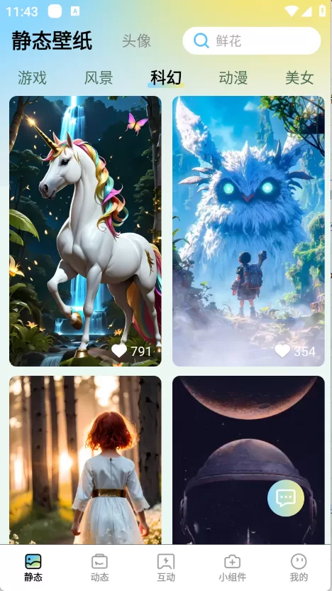 进入应用后,你会看到清晰分类的首页界面。拾光壁纸将资源按风格、主题、颜色等维度进行分类,你可以通过滑动浏览或直接点击分类标签来探索感兴趣的壁纸类型。
