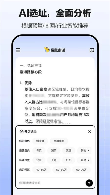 对于每一位餐饮创业者或经营者而言,最大的挑战往往来自于信息的不对称和决策的盲目性。传统经验固然重要,但在大数据时代,缺乏数据支撑的决策无异于“盲人摸象”。袋鼠参谋APP的出现,正是为了解决这一核心痛点。它不仅仅是一个工具,更是一位融合了数百万商户数据、亿级消费记录和十年行业实战经验的“AI参谋官”。通过下载袋鼠参谋app正式版,您可以将复杂的市场分析、选址评估、菜品创新等工作化繁为简,让每一步商业决策都有据可依,显著降低试错成本,提升成功概率。