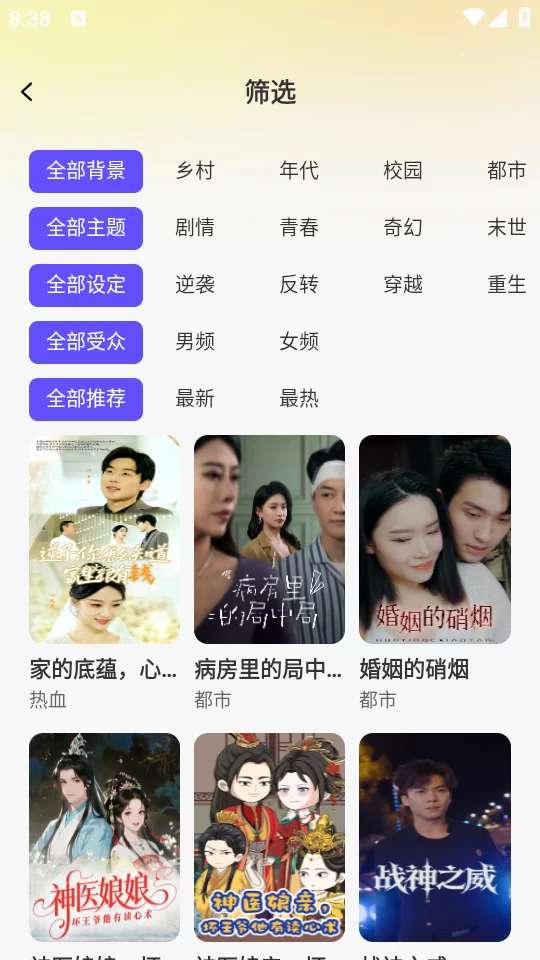 - 题材全覆盖,众口不再难调:软件内容库极其丰富,涵盖了都市甜宠、古风穿越、玄幻修仙、悬疑推理、校园言情、末世重生、热血竞技、职场逆袭等几乎所有热门题材。无论你是哪种类型的爱好者,都能在这里找到心仪之作。