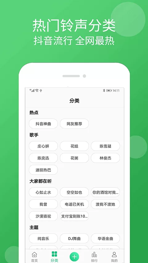 手机铃声大全APP主界面,分类清晰,资源丰富。