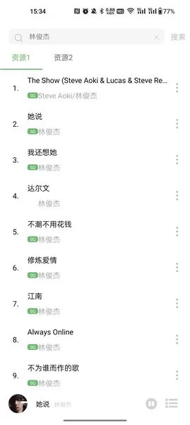 - 全网资源一键搜索:整合了广泛的音乐库,无论是小众独立音乐还是全球榜单热歌,都能通过关键词快速精准地搜索到,搜索结果还会附带相关歌曲推荐。