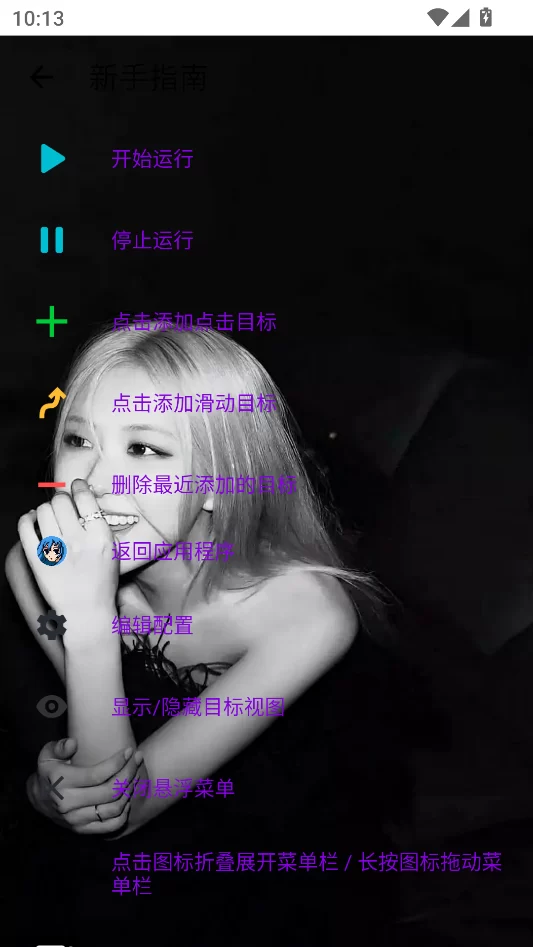 - 使用悬浮窗控制:服务开启后,屏幕侧边会出现一个便捷的悬浮窗。通过它,你可以快速启动、停止或切换已保存的脚本。