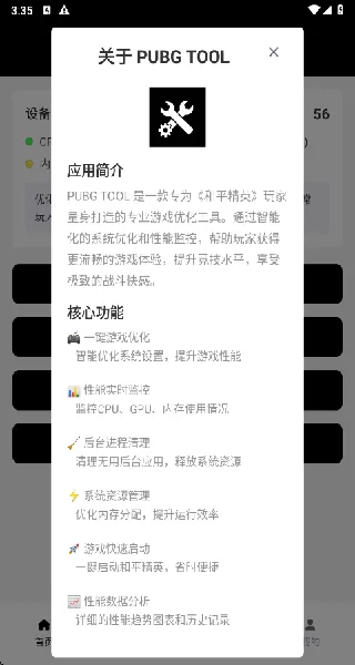 对于手游玩家而言,流畅度和画面清晰度直接影响操作手感与游戏胜负。PUBG Tool画质助手的核心价值在于其深度定制化的一键优化能力。