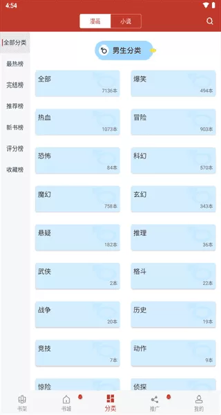 - 资源探索:点击底部的“书城”或“分类”按钮,进入漫画海洋。“书城”会展示热门、推荐和新作;而“分类”则按题材、风格等进行了细致划分,方便你按图索骥。