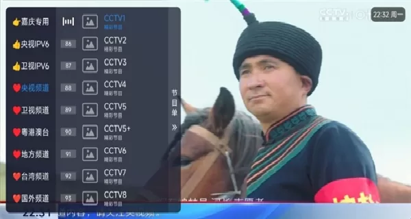 图:嘉庆TV老版本主界面,设计简洁,频道分类清晰。
