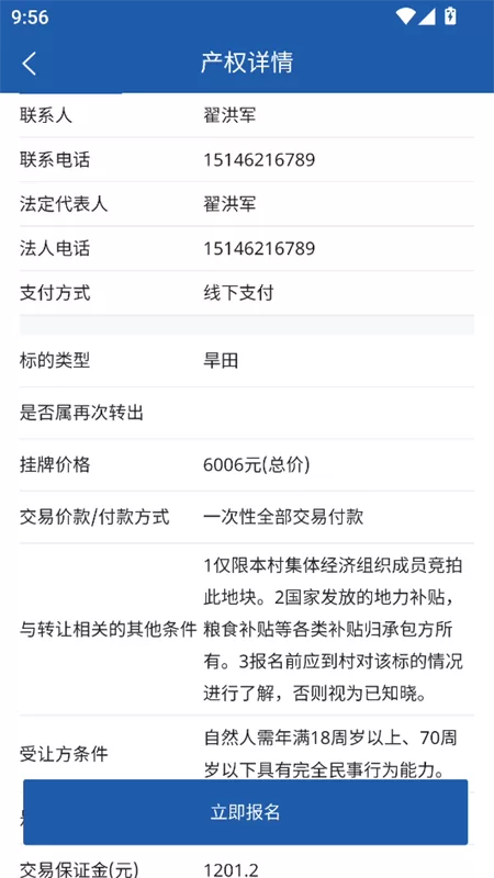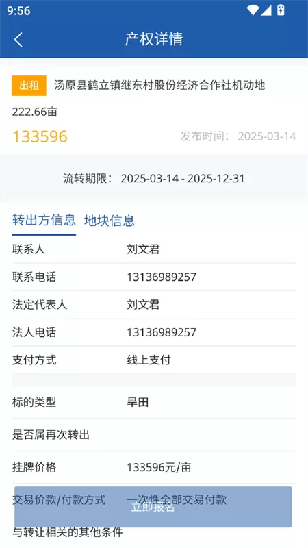 图示:在龙江农交APP中查看心仪项目后,点击“报名”即可便捷参与交易流程。