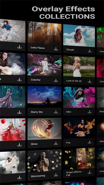 图示:丰富的特效和滤镜库,实时预览效果。
