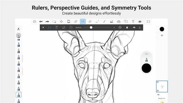 - 智能辅助系统:对于新手而言,对称工具和导向工具是快速上手的“神器”。开启对称功能后,你只需绘制一侧,软件会自动生成完美的镜像图案,轻松创作曼陀罗或对称设计。而标尺和椭圆导向工具,则能帮助你画出精准的直线和光滑的椭圆,告别手抖的烦恼。