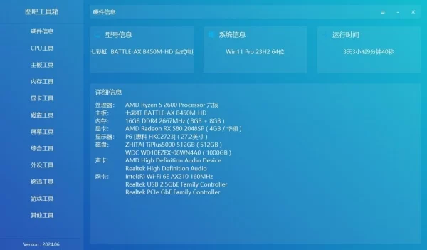 使用图吧工具箱最新版进行详细的硬件参数检测。