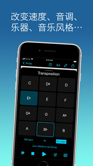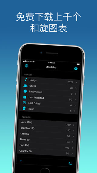 免费版的iReal Pro已经提供了强大的核心体验,足以满足日常基础练习需求。它包含了3种基础的伴奏风格和50首精选歌曲合集,足以让你熟悉软件的操作逻辑并开始练习。