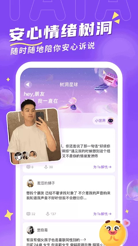 图:他ta星球中的匿名树洞功能,为用户提供一个安全私密的情感宣泄渠道。