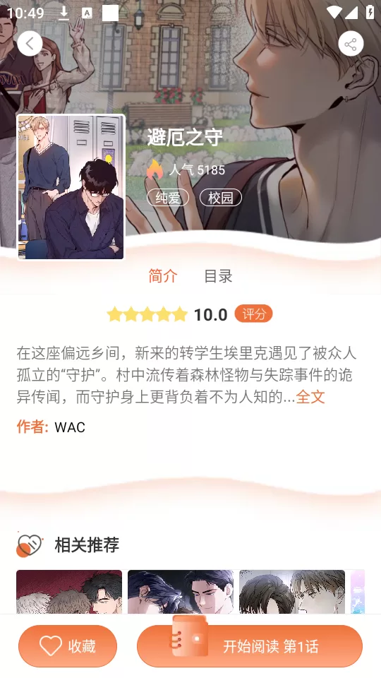 查看漫画详情页,了解作品信息、评分和目录,决定是否要开始追更。