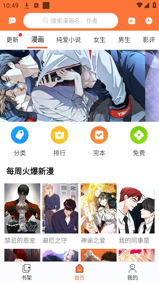 番木瓜漫画APP首页界面,各类推荐和分类一目了然,方便快速找书。