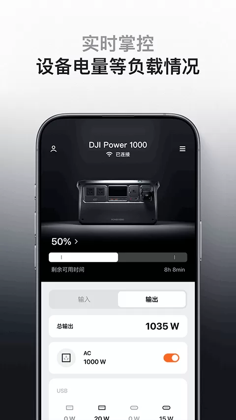 设备连接仅需蓝牙或Wi-Fi,步骤简单。一旦连接成功,您就可以在APP上实时监控诸如DJI Power户外电源的剩余电量、储能状态,或是DJI ROMO扫地机器人的清洁进度、水箱水量等关键信息,一切尽在掌握。