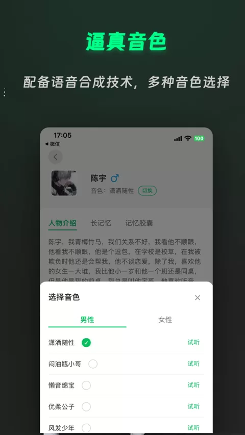 每个角色都配有专业声优定制的专属语音,聊天时可选择发送语音消息或直接进行“电话”沟通,听觉上的真实感让沉浸体验加倍。庞大的角色库持续更新,总有新故事等待你去发现。