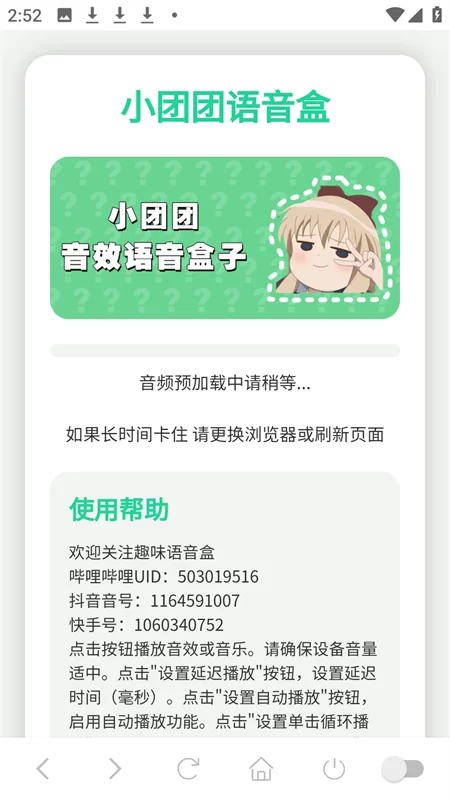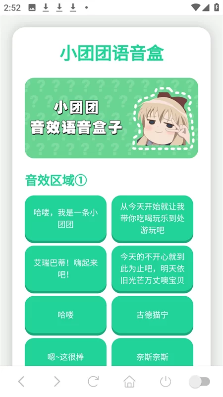图示:小团团语音盒app清爽的主界面,方便用户快速浏览和选择语音包。