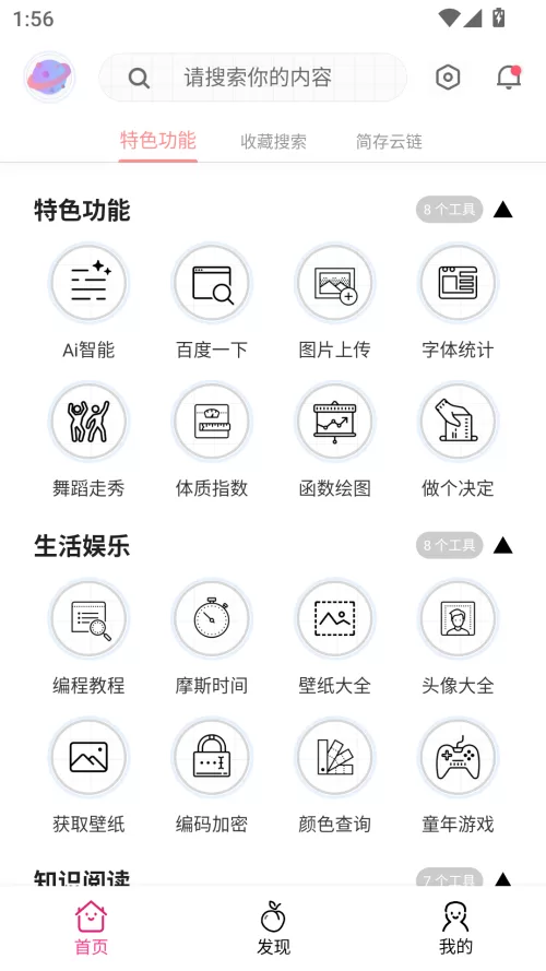 应用界面支持列表、宫格、瀑布流等多种布局切换,用户可以根据自己的操作习惯自由定制。功能分类清晰明了,首页集中展示高频工具,“发现”页则对海量功能进行细致归类,再配合顶部的全局搜索框,无论功能藏得多深,都能瞬间定位。