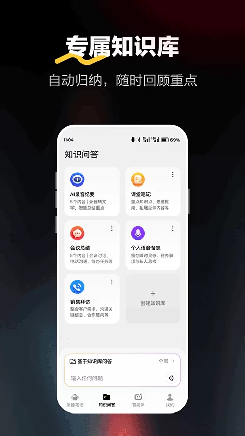 - 专属知识库与精准检索:所有录音和转写内容都会自动同步并安全保存,形成你个人的专属知识库。基于先进的RAG技术,你可以像对话一样,通过语音或文字快速检索数月甚至数年前的会议细节,记忆从未如此轻松。