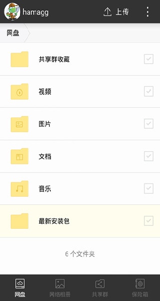 图示:360云盘APP清晰直观的主界面,所有功能一目了然。