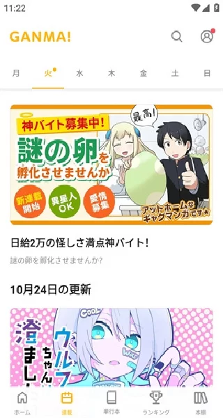 - 智能书架与更新提醒:你可以将喜爱的漫画添加到个人书架中。Ganma会智能追踪这些作品的更新状态,一旦作者发布新内容,系统会立即推送提醒,确保你永远不会错过任何一话的更新,堪称“追更神器”。