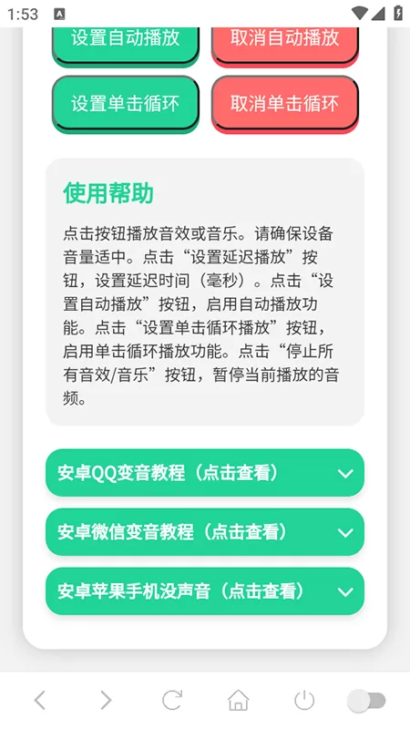 实战应用:与聊天软件联动:这是软件的核心玩法。应用内附带了详细的安卓QQ/微信变音教程。